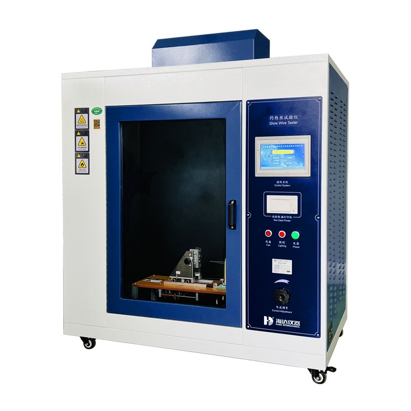 The glow-wire test simulates thermal stress or ignition sources caused by overheated components or overloaded resistors in a short period, assessing fire hazards for parts or components under fault or overload conditions. It applies to plastic and non-metallic insulating materials used in electrical and electronic products, components, and household appliance parts, such as switch housings and relay sockets. This tester features a PLC + color LCD touchscreen control system with an intuitive interface and includes a built-in printer for recording test conditions and results.
